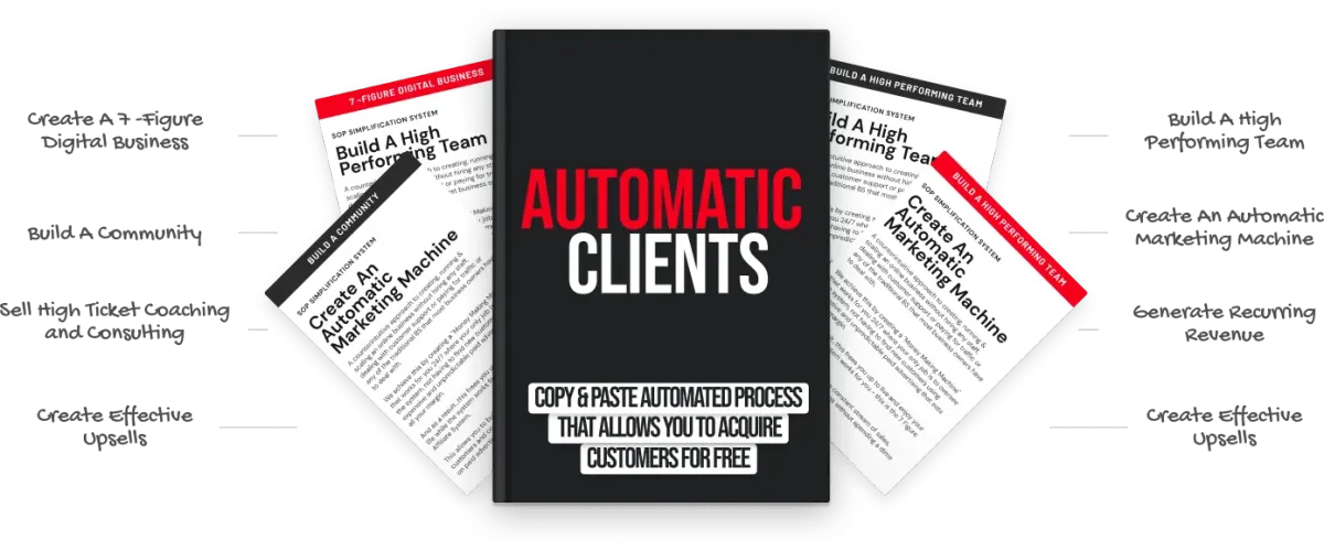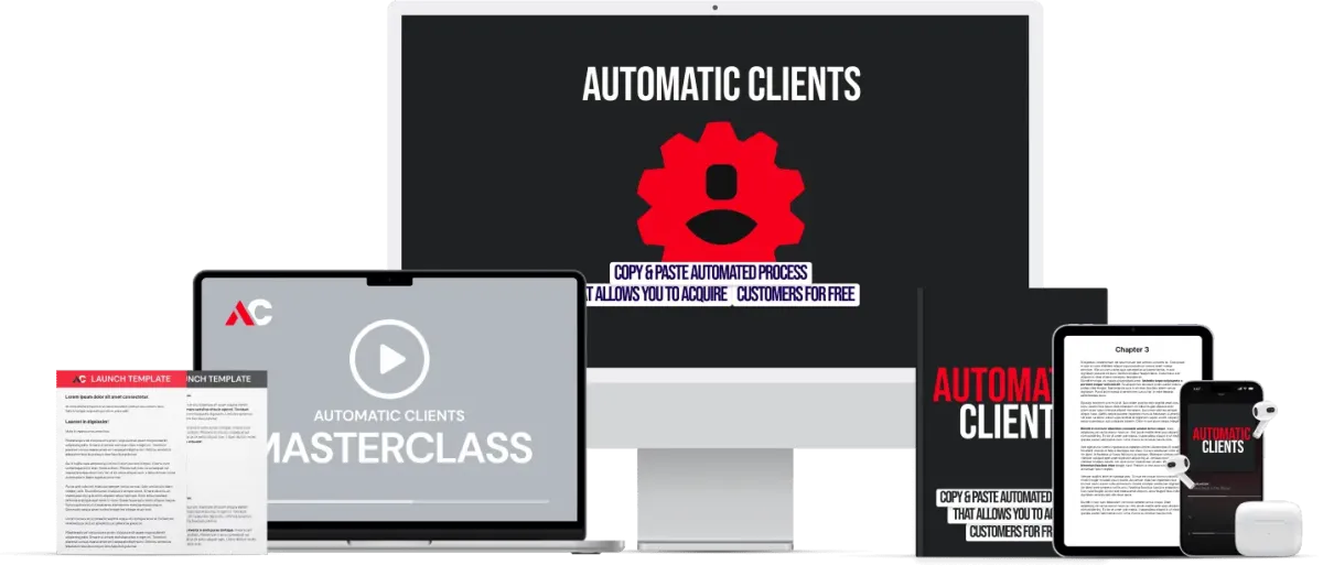 [INSERT ANSWER] You are getting a copy of the Automatic Clients ebook, available instantly. You are getting the highly praised 6+ hour Advanced Acquisition Theory course. You are getting our advanced Economics Calculator. You are getting our 2,854 Profitable Niches spreadsheet. You’re getting the 7-Day Fast Start video series, our best $200,000 Advertisement, access to our FB community, our 7-Figure Video Sales Letter script, and a 26-step Launch Checklist.